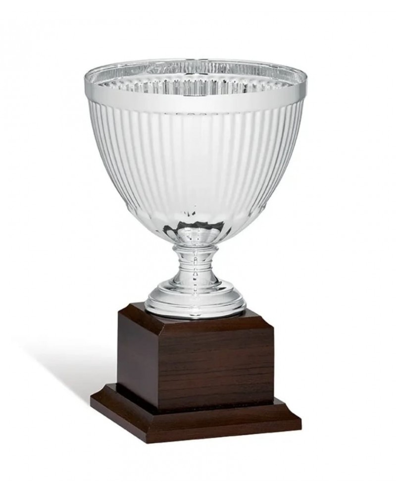Coppa sportiva con calice in metallo, piede in ABS e base legno